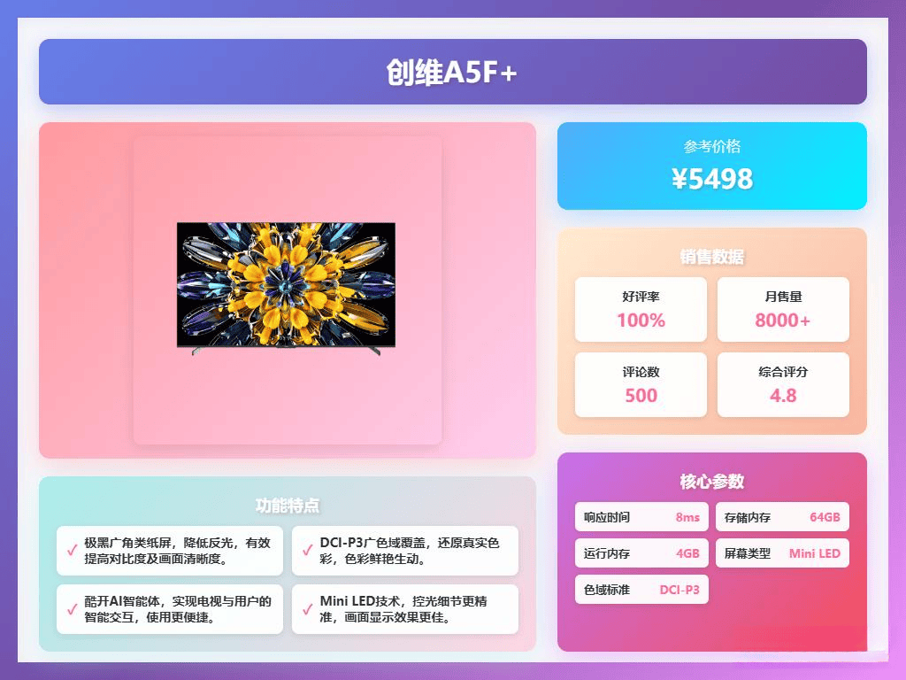 简单来说,如果你追求超高的性价比和最新的显示技术,TCL可能更适合你;如果你对画质有极致的追求,同时对OLED情有独钟,那么创维或许是更好的选择。